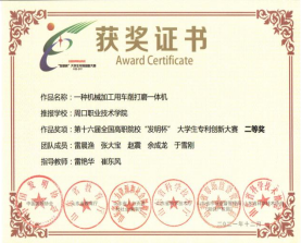 为培养大学生创新实践能力,营造良好的科技创新氛围,9428cn太阳集团参加第十六届全国高职院校“发明杯”大学生专利创新大赛,并荣获一等奖。